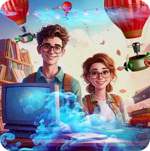 Ruby weet waar vergeten avonturen liggen te wachten. Ze kent de weg naar zwevende eilanden, mysterieuze deuren, slapende draken en nieuwsgierige tovenaars die je nodig hebben. Soms piept ze ineens op je scherm tevoorschijn – plop! – en knikt ze: “Kom, volg mij.”